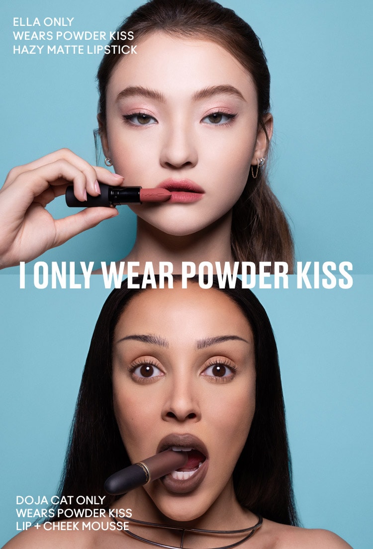 אלה עם גוון Stay Curious על השפתיים ועם גוון Make it Fashun! על הלחיים למראה מטושטש ורדרד ורך
