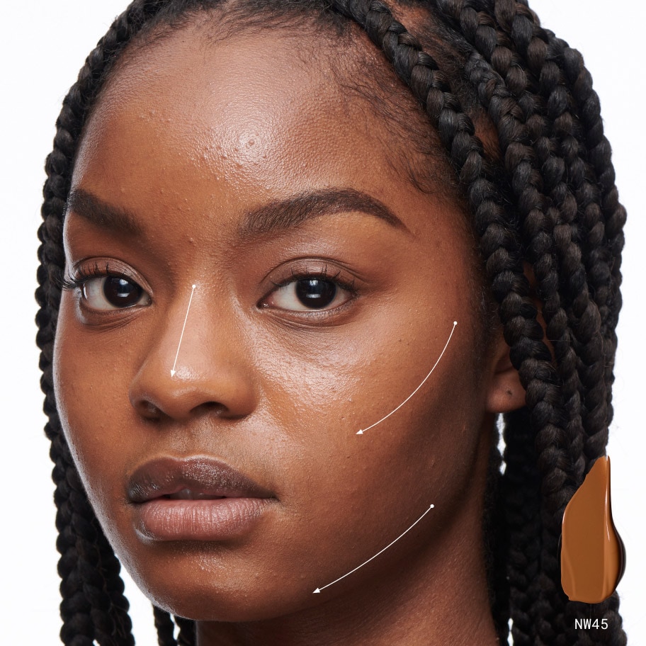 צרי קונטור בעזרת קונסילר בגוון אחד עד שניים כהים יותר מגוון המייק-אפ המדויק שלך וצרי הארות בעזרת גוון אחד עד שניים בהירים יותר.