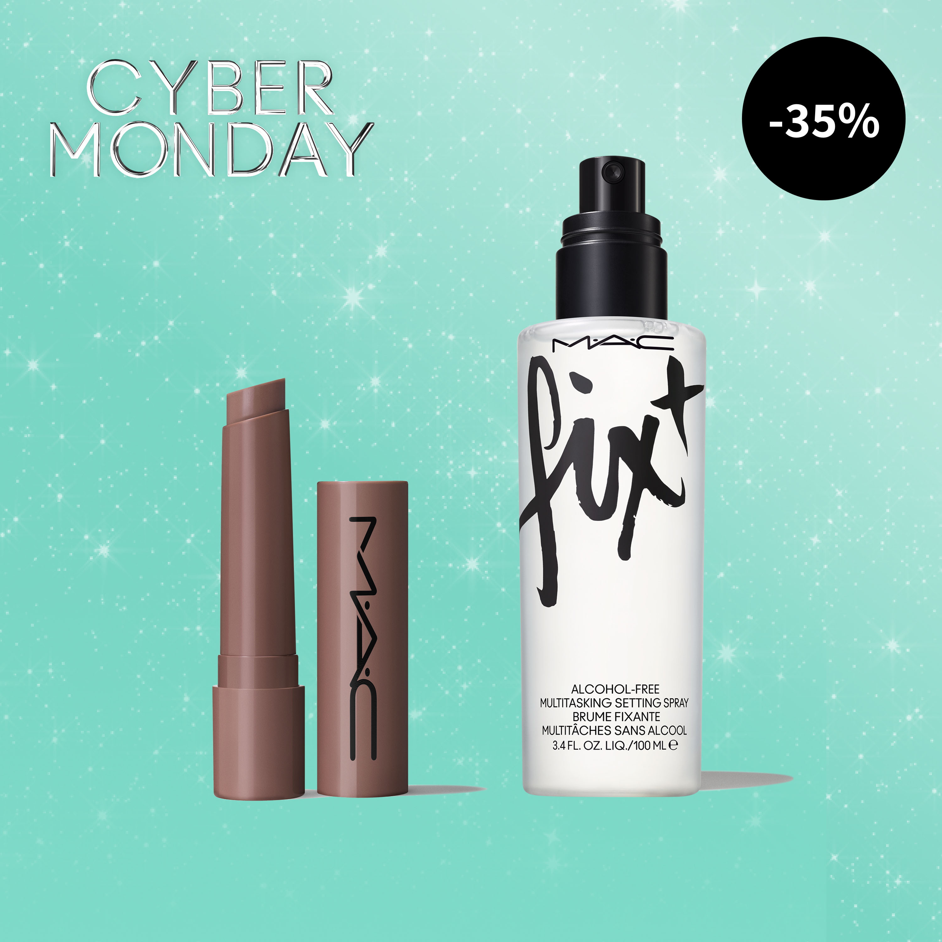 ספריי מקבע ושפתון מבריק בגוון לבחירתך